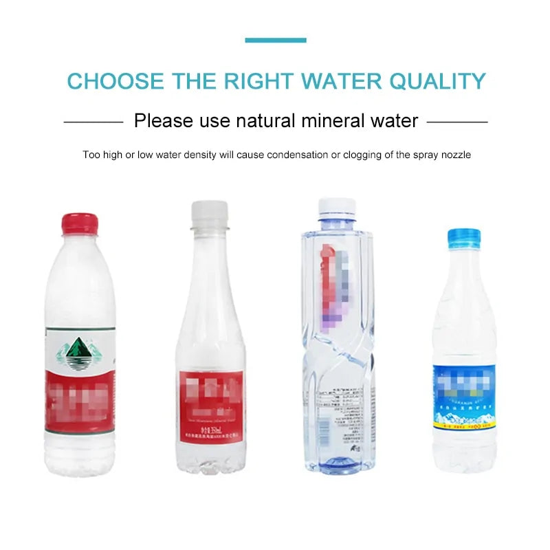 Please use mineral water instead of distilled or purified water. Too small a water density during spraying can cause water droplets to occasionally freeze on the surface of the machine. This is normal. This is not a machine leak. It can be replaced by another water quality.